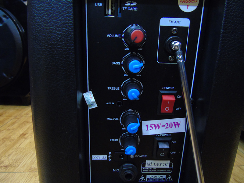 Ngay ở mặt trước của loa Hansen FY8 là một màn hình đèn led với các phím điều chỉnh khi sử dụng ở chế độ USB. Mặt sau của loa Hansen FY8 gồm các nút chỉnh âm thanh cho loa và âm thanh của micro nằm dọc theo bên trái và dưới cùng là công tắt nguồn của loa.