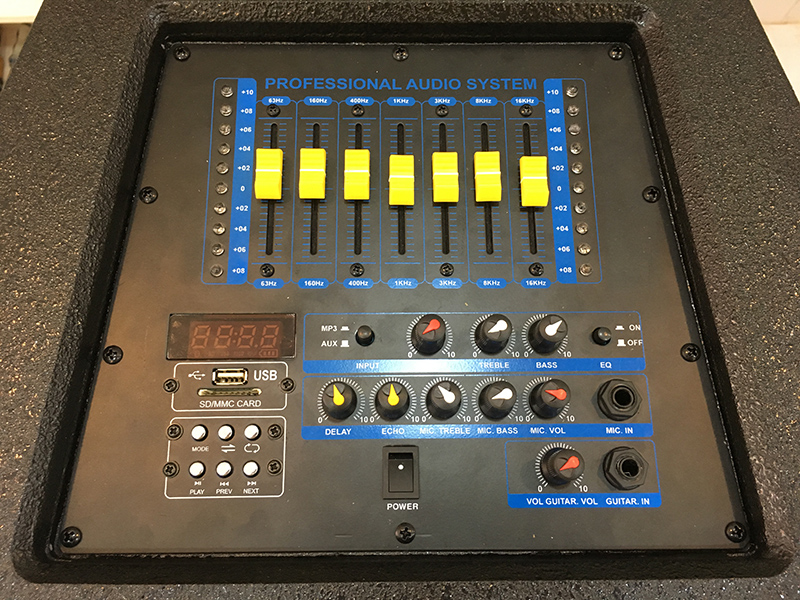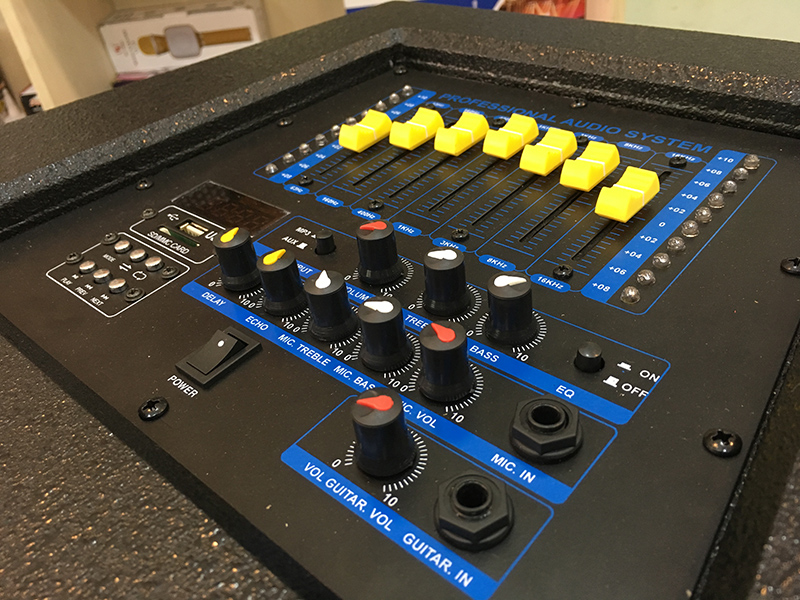 Sử dụng dạng bảng điều khiển theo kiểu Equalizer và được gắn ở mặt trên của loa, tích hợp thêm các nút chỉnh âm thanh của nhạc,micro, công tắc nguồn và cổng micro có dây, nhạc cụ, khiến việc tùy chỉnh theo ý thích trở nên dễ dàng hơn bao giờ hết. Không dừng ở đó loa còn hỗ trợ thêm 1 bảng đèn led, để cho người dùng quan sát các hoạt động mà loa Best BT-808 đang hiện hành.