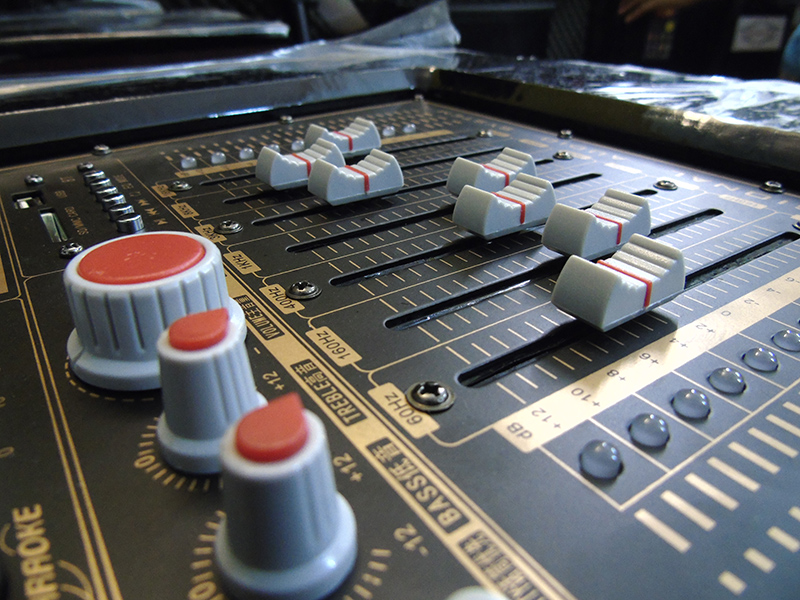 Thoạt nhìn trên cùng ta có thể thấy ngay một bảng đèn led nằm ở góc phải của loa, ngay bên dưới là các nút chỉnh khi bạn sử dụng ở chế độ USB, còn phía bên trái là nút chỉnh Echo và âm thanh của micro. Hàng ngay phía dưới là hàng nút chỉnh cho âm thanh của loa.