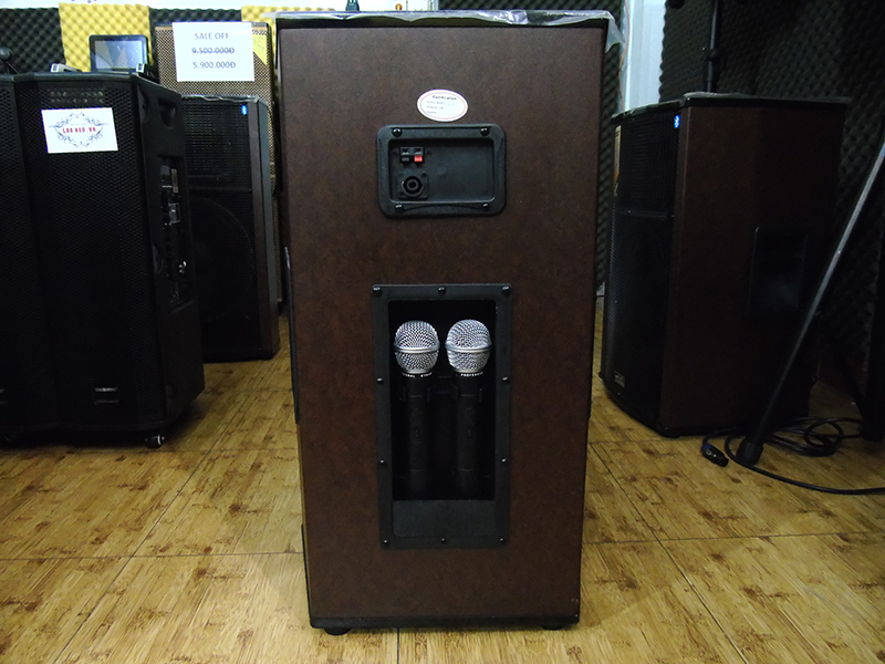Đi kèm với bộ loa là 2 micro không dây có độ hút khá cao, có chất lượng tương tự các micro không dây của những phòng karaoke chuyên nghiệp, tuy nhiên nếu người dùng không muốn sử dụng micro không dây thì loa có hỗ trợ thêm một cổng micro có dây. Bên góc trái của loa có một góc để đựng micro không dây.