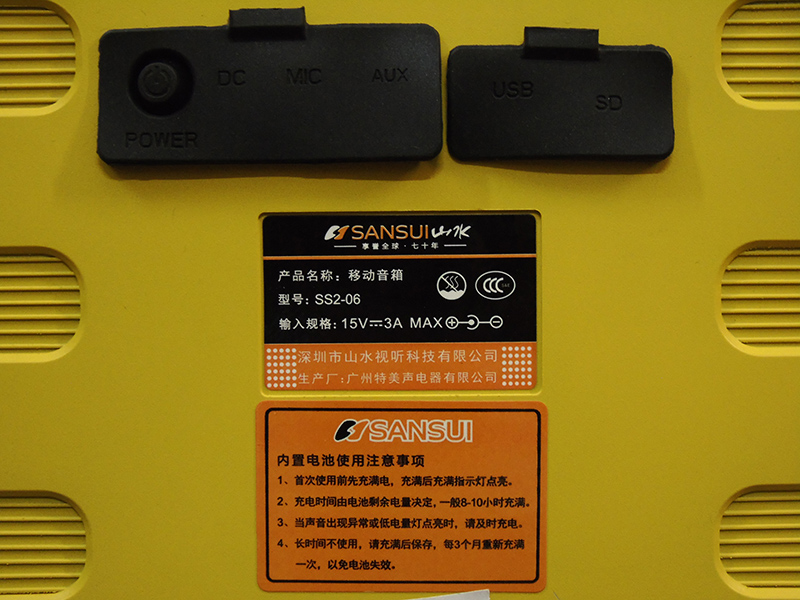 Loa Sansui SS2-06 tạo cho người dùng sự an tâm về sản phẩm khi thiết kế bảng mạch của loa vào bên trong loa, phần điều khiển phía trước và phần kết nối ở phía sau ( phần kết nối được bảo vệ bằng các nút đậy cao su ). Mặt trên là nút chỉnh âm lượng của Nhạc và âm lượng Mic