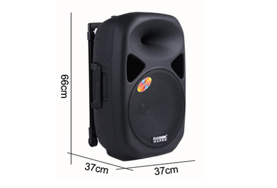 Với kích thước 66x37x37cm, cân nặng khoảng 20kg, bạn có thể dễ dàng đem loa đi bất kỳ đâu. Nếu cảm thấy quá nặng, tay kéo và bánh xe sẽ giúp loa trở thành một chiếc vali kéo dễ dàng. Dễ dàng di chuyển và tiện dụng khi đi xa.