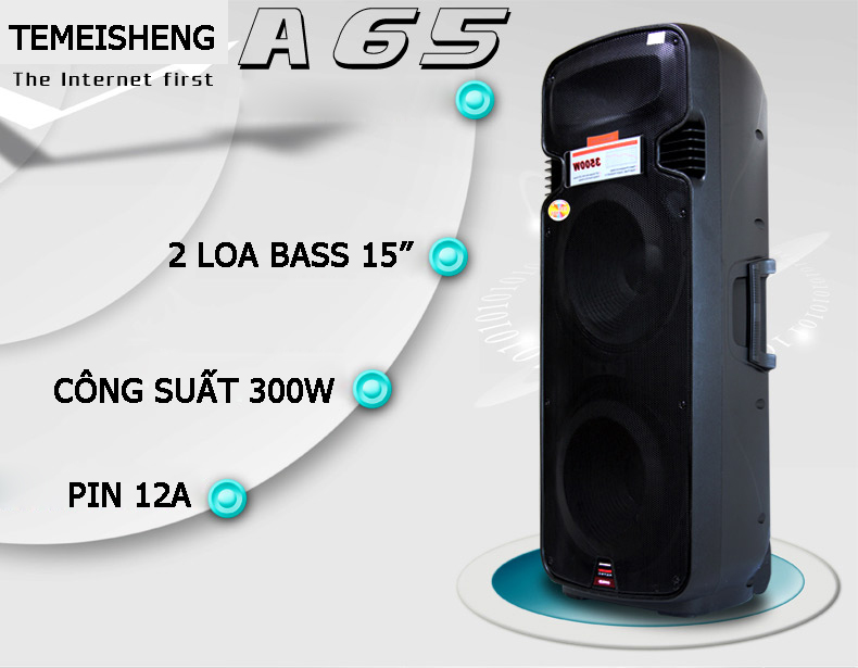 Hôm nay Muatot.vn xin giới thiệu sản phẩm loa di động temeisheng A65. Đây là một lọai loa kéo di động có công suất lớn được tích hợp 2 loa bass trong 1 và có thiết kế cũng như tính năng nổi bật mang lại cho chúng ta một trải nghiệm tuyệt vời.