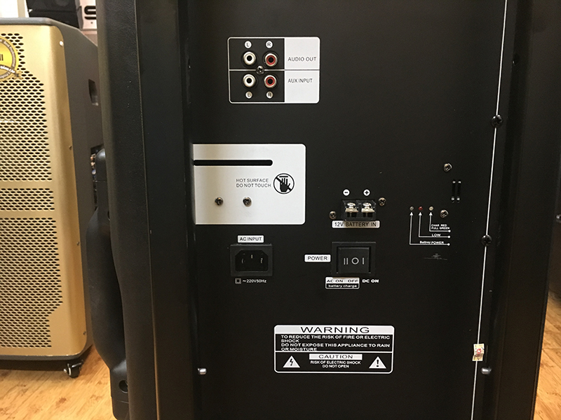 Để hỗ trợ quá trình thoát âm cũng như xả khí, loa được thiết kế thêm hai cổng thoát khí ở hai bên, giúp hạn chế tạp âm cũng như áp lực lên bảng mạch. Phía trên của loa là hệ thống các nút điều chỉnh được thiết kế khá bắt mắt với hai màn hình led, một màn hình hiển thị chế độ sử dụng, một màn hình thể hiện cao độ của âm thanh. Ngay phía bên trái của loa là các nút tùy chỉnh chế độ sử dụng và USB được thể hiện khá nổi bật với màu nút trong suốt cùng thông tin hiển thị màu đen ở bên trong khá bắt mắt. Phần phía dưới đó chính là hệ thống nút tùy chỉnh âm lượng dành cho nhạc như treble/bass nhạc và cho micro như treble/bass micro, echo, delay..., loa cũng hỗ trợ các nút xoay chỉnh âm lượng cho nhạc cụ và các cổng micro, guitar phụ 6.5 thông dụng.