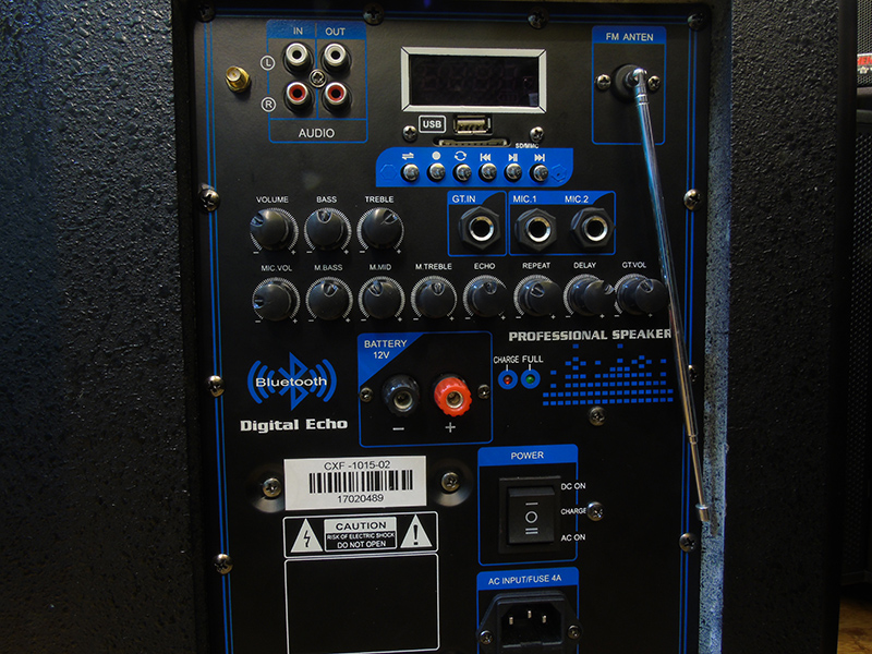 Bảng mạch của loa CXF 1015-02 được phân bố ở mặt bên của loa các phím điều chỉnh được bố trí thuận tiện nhằm giúp người dùng dễ dàng thao tác, sử dụng một cách nhanh chóng. Loa được hỗ trợ đầy đủ các phím điều chỉnh cơ bản như Bass, Treble, Mic Bass, Mic Treble, Echo, Delay … cho phép người dùng có thể dễ dàng thao tác cũng như điều chỉnh phù hợp với nhu cầu sử dụng cũng như giọng hát hay sở thích cá nhân. Đặc biệt, loa còn có một vũ khí bí mật khác, đó chính là một cổng anten Bluetooth chuyên dụng, có khả năng tăng cường tính hiệu bluetooth, cho phép bạn có thể di chuyển xa hơn so với các dòng loa kéo di động khác, tăng cường tính đa dụng mà loa mang lại.