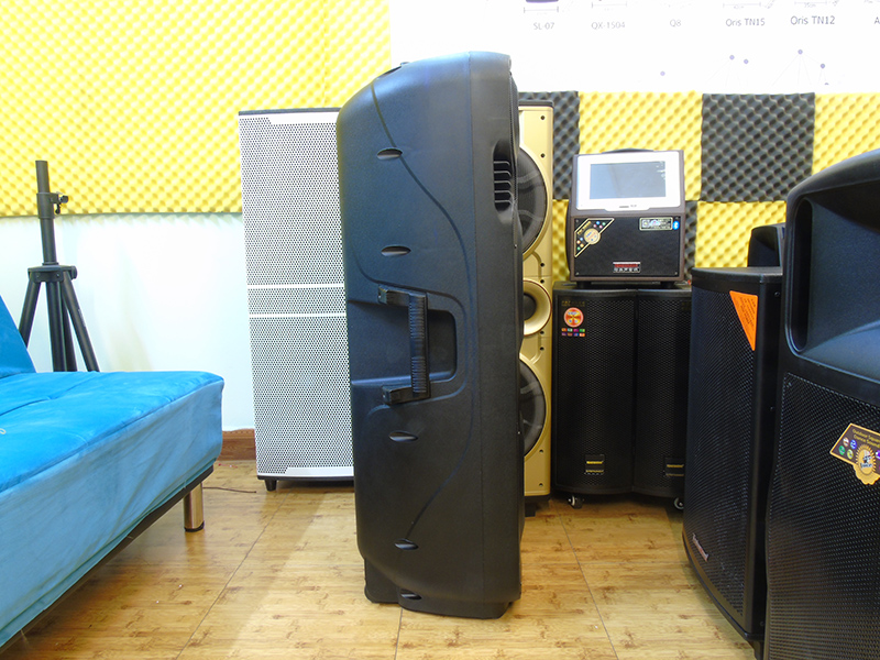 Do là loa kéo nên tính năng di động của loa cũng được chú trọng rất nhiều, loa có 1 tay nắm phía trên, 2 tay cầm 2 bên, 2 bánh xe phía sau và 2 chân trụ phía trước. Với thiết kế như vậy, loa sẽ có thể tùy ý di chuyển bất chấp mọi địa hình. Đặc biệt, khi mua loa sẽ có kèm theo một cặp micro không dây có tần số tương thích với loa, sẽ tạo cho người dùng một cảm giác như một dàn hát karaoke tại nhà.
