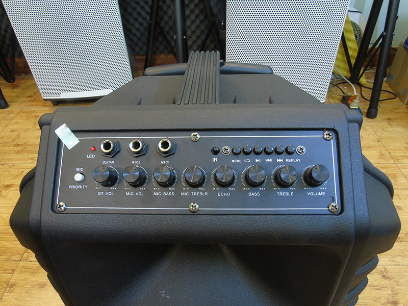 Tiếp đó kế bên MIC.VOL là 3 phím điều chỉnh MIC.BASS điều chỉnh Bass của micro, MIC.TREBLE điều chỉnh Treble của micro và Echo điều chỉnh cho micro người dùng có thể tùy chỉnh loa để thể hiện bài hát tốt nhất. Nằm kế bên phím ECHO là BASS và TREBLE giúp bạn điều chỉnh những bản nhạc trữ tình êm ái hay nhạc bản nhạc sôi động, và nằm cuối cùng là phím VOLUME giúp bạn dễ dàng điều chỉnh âm lượng loa một cách thích hợp.