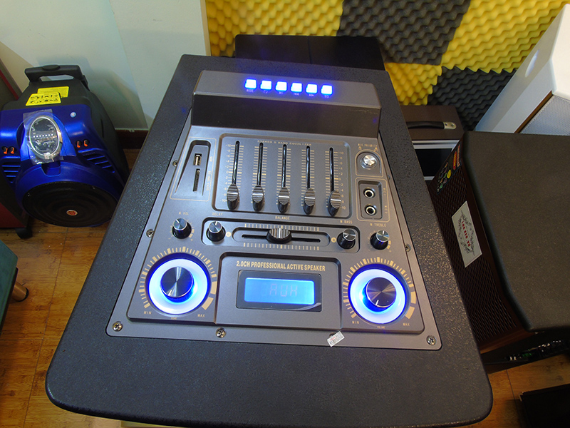 Bảng điều khiển của loa được tích hợp ngay mặt trên của loa ,tạo sự đơn giản trong việc điều khiển và tùy chỉnh theo ý thích người dùng.Loa có 2 nút lớn nằm hai bên góc dưới,nút trái điều chỉnh Echo và nút phải điều chỉnh Volume tổng của loa.Phía trên là hai nút dùng để chỉnh Mic Volume và Mic Treble,bên cạnh là thanh cân bằng giữa Delay và Mic Bass.