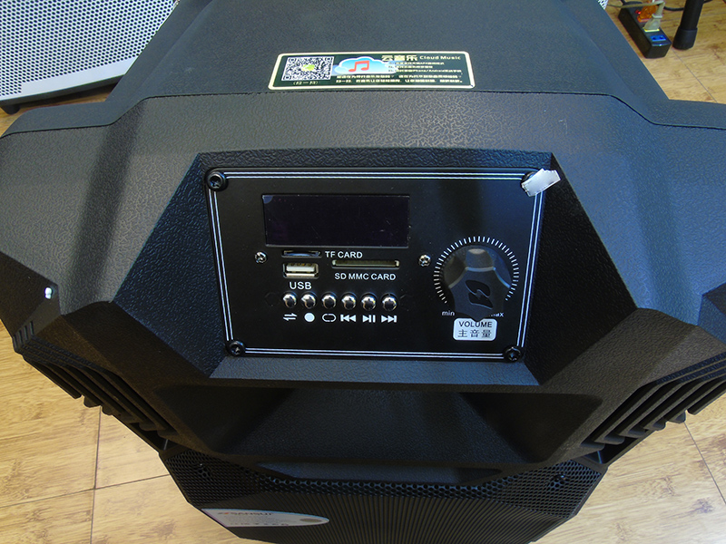 Bảng điều khiến được phân bố ở mặt trước của loa với góc trái trên là một màn hình led được sử dụng để hiện thị thông tin bài hát, chế độ loa… Ở giữa là 3 cổng kết nối cho phép người dùng có thể cắm trực tiếp thẻ nhớ hoặc USB đã có nhạc và phát trực tiếp trên loa để thưởng thức. Ngoài ra loa còn hỗ trợ công nghệ Bluetooth thông qua công nghệ này người dùng có thể phát nhạc trực tiếp từ smartphone một cách nhanh chóng, thuận tiện.