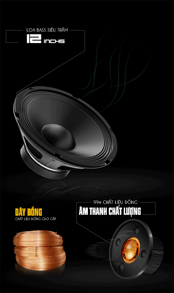 Để có chất lượng âm thanh tuyệt vời như thế. Loa bass 297L có kích thước lên đến 12 inchs và cấu thành bộ chuyển âm bằng đồng nguyên chất 99%. Cho ra âm thanh trầm ấm và trong trẻo.