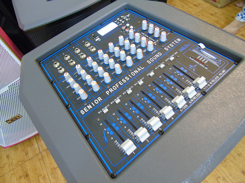 Một điểm đột phá của sản phẩm Temeisheng A172 đó là khả năng tích hợp tất cả các phím điều chỉnh lên mặt trên của loa cùng bộ điều chỉnh Equalizer, vừa tạo sự mới lạ, vừa mang lại tính chuyên nghiệp cho loa. Thoạt nhìn, có thể thấy bố trí các phím rất dễ nhìn và dễ dùng khi chia làm 3 phần rõ ràng. Phần trên cùng là 8 cổng 6.5 mm cho phép kết nối micro có dây, cũng như thiết bị âm thanh khác như nhạc cụ, bàn DJ… Ngay bên cạnh là một màn hình Led cho người dùng xem chế độ hay bài hát, kèm thêm xung quanh là cổng Usb, khe thẻ SD, cổng 3.5 mm và các phím tùy chỉnh của loa. Dù vậy, để tinh chỉnh âm thanh của loa một cách nhanh chóng, bạn cần phải có một khoảng thời gian làm quen nhất định, tuy nhiên, sau đó bạn sẽ dễ dàng điều chỉnh âm thanh của loa phù hợp nhất với từng thể loại nhạc riêng biệt, nâng cao chất lượng âm thanh của nhạc lẫn của âm micro, giúp người hát cảm thấy thoải mái hơn và âm nhạc đầu ra hay hơn.