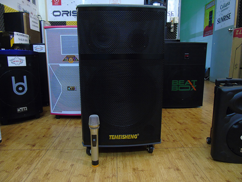 Ngoài ra để tạo sự di chuyển dễ dàng cho loa, Temeisheng đã thiết kế 2 tay nắm 2 bên, 4 bánh xe giúp việc di chuyển dễ hơn. Micro đi kèm với loa là dạng micro đời mới với chất âm vượt trội, khả năng hút âm cao, lọc tạp âm cực tốt, đây chính là dòng micro mà các ca sỹ trẻ săn đón nay đã được hãng Temeisheng đưa kèm theo sản phẩm để giúp người dùng có thể có thể tự tin hơn với giọng hát của mình.