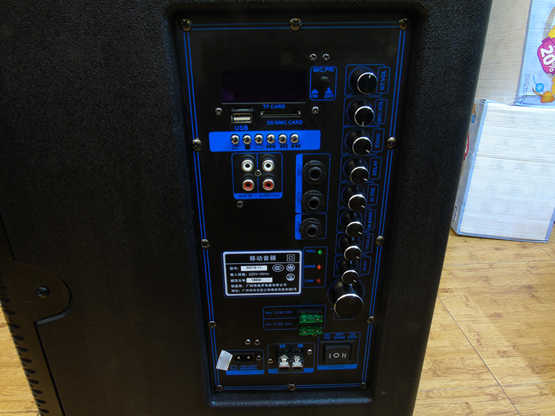 Tuyệt vời hơn là thời gian sử dụng của GD 15-11,cũng khá lâu.Chỉ cần sạc đầy từ 6 tới 8 tiếng là bạn có thể tha hồ sử dụng từ 4 tới 6 tiếng với công suất vừa đủ nghe.Nếu bất chợt bạn chưa sạc đầy hay đèn báo pin yếu mà bạn lại không ở nhà,thì đừng lo,vì loa có khả năng kết nối với bình acquy 12 V và xài điện trực tiếp,như vậy sẽ khiến cho cuộc vui của bạn được trọn vẹn mà không bị gián đoạn.