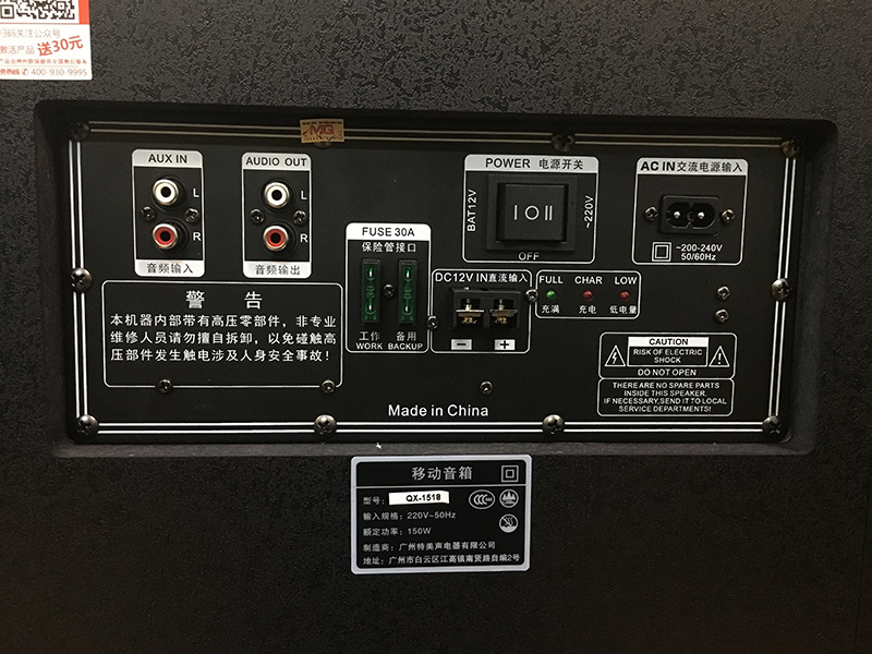 Loa được hỗ trợ các cổng kết nối như bluetooth, USB, thẻ nhớ cho phép người dùng có thể sử dụng loa cho nhiều mục đích khác nhau . Temeisheng QX-1518 cũng có một màn hình led hiển thị chế độ sử dụng cùng các nút tùy chỉnh cho phép người dùng thay đổi chế độ sử dụng thích hợp. Loa còn có thể kế nối với hai micro rời thông qua các cổng micro phụ giúp người dùng thoải mái hơn khi sử dụng. Đi kèm theo loa là 2 micro không dây chuyên dụng có độ hút âm ổn định, âm thanh đầu ra thanh thoát rất thích hợp cho những bạn đam mê ca hát.