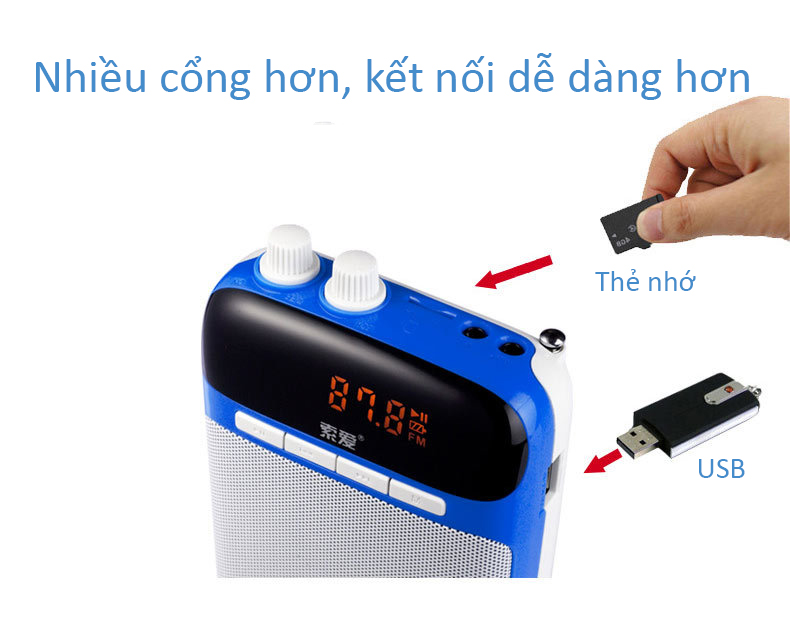 Và một điểm rất quan trọng mà bạn sẽ không ngờ tới ở loa trợ giảng SOAIY S-318 đó chính là khả năng tích hợp với các thiết bị khác như usb, thẻ nhớ, ngoài ra còn có thể kết nổi với các thiết bị khác thông qua 2 dây dẫn jack cắm 3.5 và jack nối đầu usb cực kỳ tiện dụng. Sản phẩm còn đi kèm với một dây đeo hỗ trợ cho người sử dụng dễ dàng hơn khi sử dụng S-318 trong công việc.