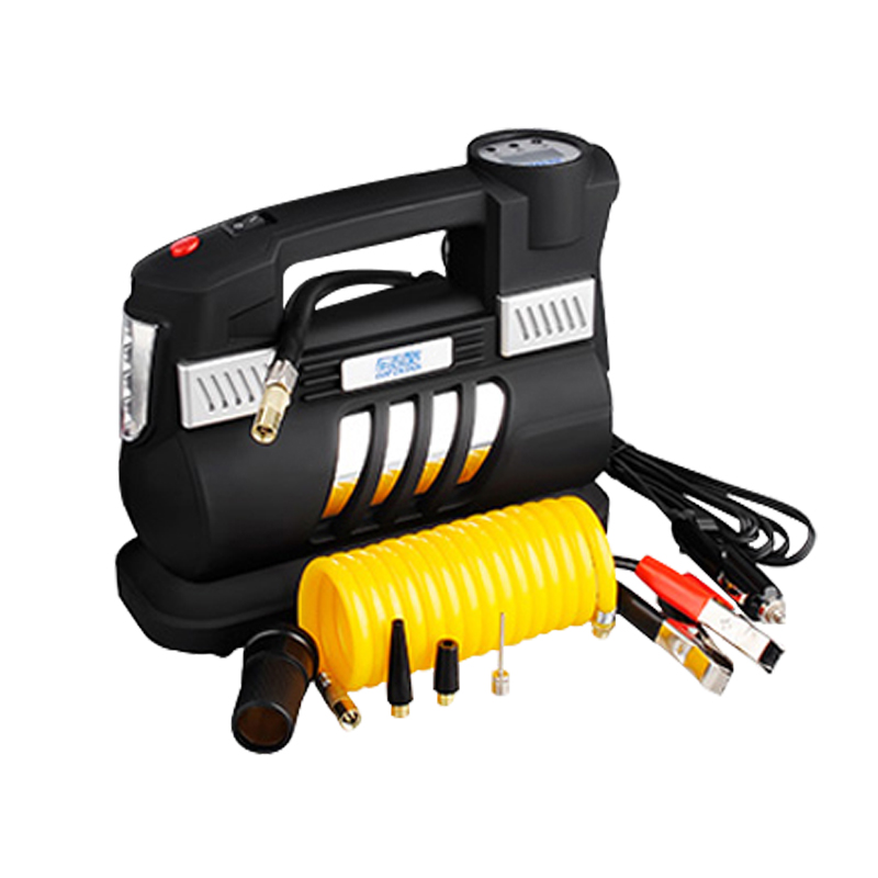 Sử dụng nguồn điện 12V từ bình ắc quy hay ổ điện tẩu thuốc trên ô tô. Tuy chỉ là máy bơm nhưng lại có nhiều điểm đáng chú ý ở đây đó chính là đồng hồ đo áp suất khí dễ dàng cho bạn đo đạc lượng khí ổn định bên trong vật cần bơm mà không lo phải nhắm chừng để hụt hơi. Bên cạnh đó còn hỗ trợ đèn LED sử dụng vào ban đêm hay rọi vào những ngóc ngách tối trong chiếc xe của bạn. Đồng thời kích thước cực kì nhỏ gọn vừa đủ bằng một cái cốp xe máy tiện lợi khi mang vác theo.