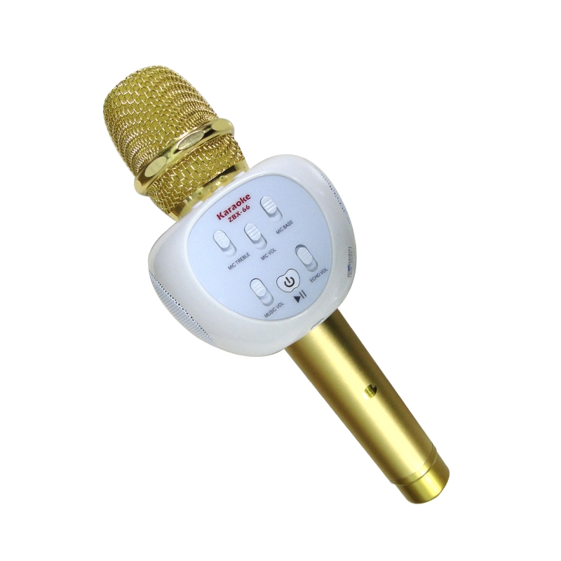 Đầu micro được sơn một lớp sơn màu vàng đồng khá sang trọng với công nghệ lọc âm thế hệ mới qua 3 lớp giúp cản những tạp âm từ môi trường xung quanh. Không chỉ sở hữu một kiểu dáng tuyệt vời, ZBX-66 còn sở hữu công nghệ âm thanh tiên tiến, micro được tích hợp 2 loa đi kèm có công suất 10w cho ra âm thanh sắc nét, hỗ trợ trong công việc giảng dạy, ca hát ở những khuôn viên vừa và nhỏ. Không những thế, ZBX-66 còn được trang bị một bảng điều chỉnh với đầy đủ các nút chức năng để điều chỉnh cho micro, chúng ta hoàn toàn có thể điều chỉnh được Treble, Bass, độ vang Echo, và âm lượng cho Micro.