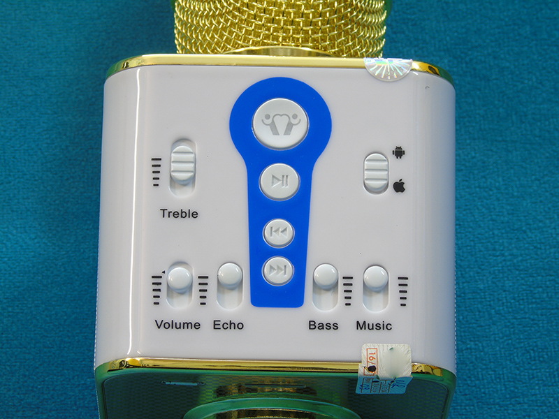 Phần điều khiển của loa rất rõ ràng và dễ nhìn, với một nút nguồn nằm ngay giữa thân loa, bên dưới là nút play/pause và chuyển tới, chuyển lùi. Phía bên trái là nút chỉnh Treble, còn bên phải là nút chọn kết nối ở dạng Android hay IOS. Dưới cùng bên dưới là một dàn nút chỉnh như: Volume, Echo, Music, Bass.